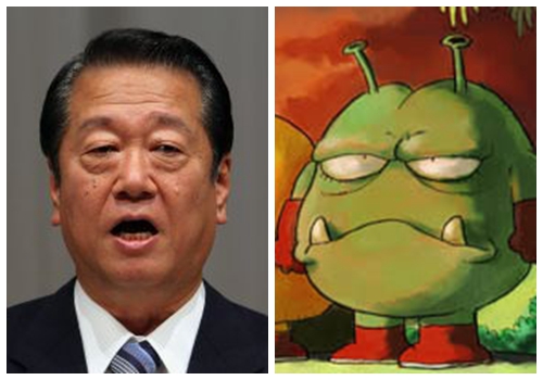一位是日本資深政治家,一位是動漫《阿拉蕾》中不慎來到地球的綠色外星人,小澤一郎和尼可家大王在眼神和臉型上都有那麼幾分相似。