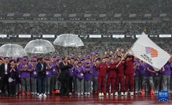 當日,第20屆世界田徑錦標賽在日本東京落幕。第21屆世界田徑錦標賽將在中國北京舉行。新華社記者 鞠煥宗 攝