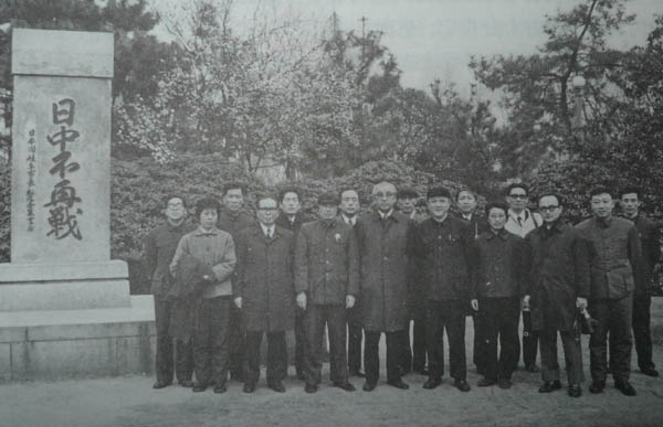 1973年3月,日本《读卖新闻》副社长原四郎一行访华,曾文彬陪同参观位于杭州西湖旁公园内的“日中不再战”之碑并合影