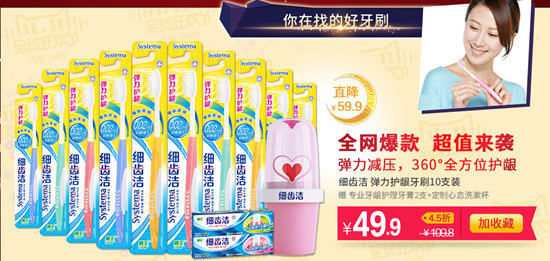 推荐商品:细齿洁弹力护龈牙刷10支装