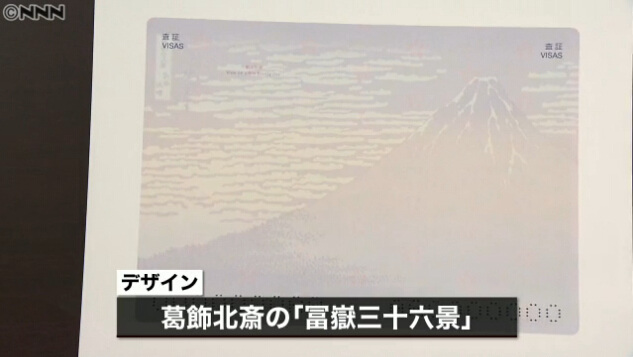 新的护照设计中采用了日本代表性浮世绘葛饰北斋的《富岳三十六景》,签证页左右两页拼接在一起构成一幅画面。