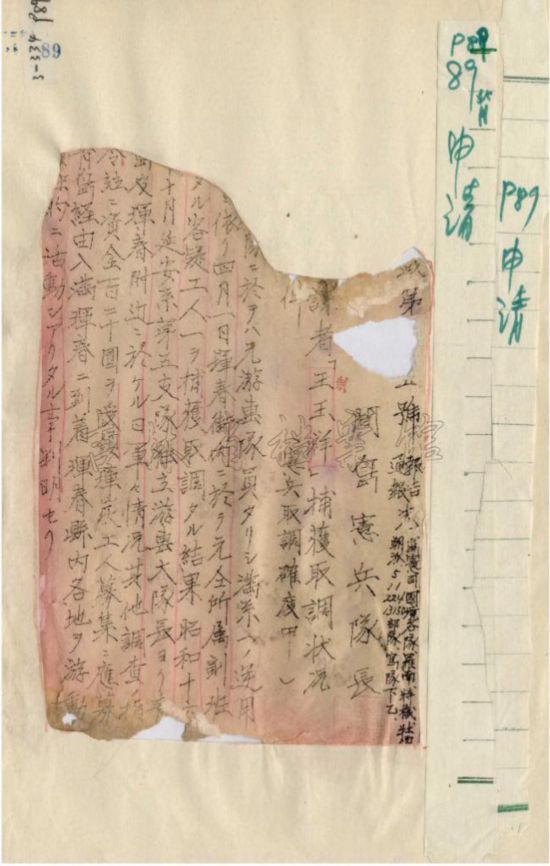 侵华日军“间岛”宪兵队对中共地下工作人员王玉祥的审讯报告档案。(吉林省档案馆供图)