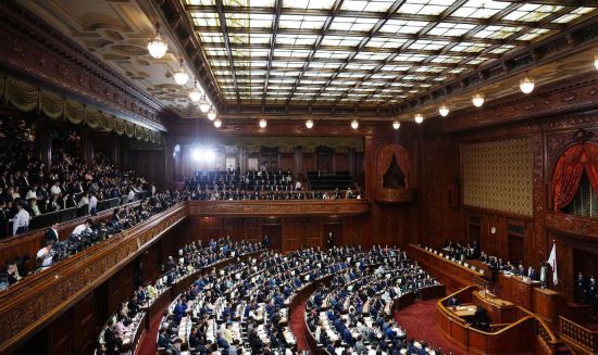 这是10月21日在日本东京拍摄的临时国会众议院首相指名选举现场。新华社记者贾浩成摄