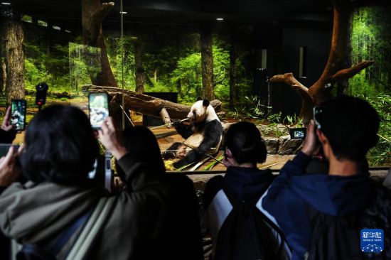 2025年12月25日,在日本东京的上野动物园,游客拍摄大熊猫“晓晓”。新华社记者 贾浩成 摄