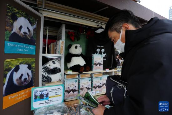2025年12月25日,在日本东京的上野动物园,游客选购大熊猫“晓晓”和“蕾蕾”的纪念商品。新华社记者 贾浩成 摄