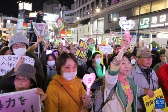 据抗议活动组织方介绍,当晚参加抗议的民众超过6000人。抗议者手举“武力无法带来和平”“高市下台”等标语,齐声呼喊“反对战争”“守护和平”,抗议日本政府在安全政策上的转向。